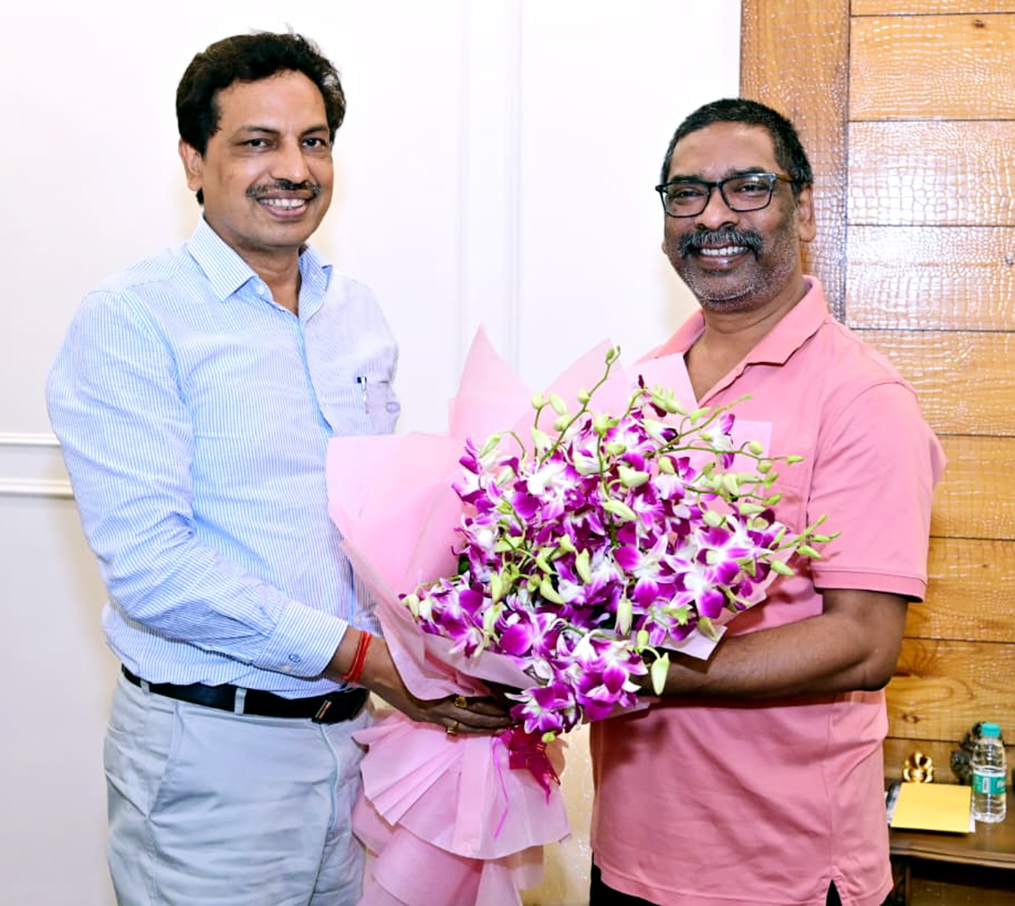 رانچی :جھارکھنڈ کے ترقیاتی کمشنر اجے کمار سنگھ نے جمعہ کو رانچی کے کانکے روڈ پر واقع چیف منسٹر کے رہائشی دفتر میں وزیر اعلیٰ ہیمنت سورین سے ایک بشکریہ ملاقات کی۔